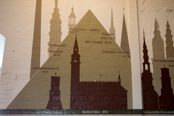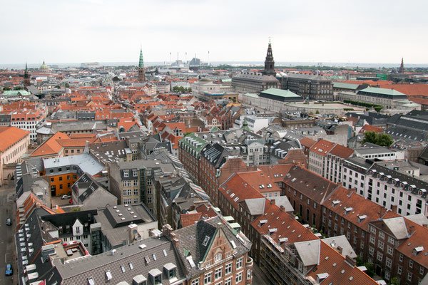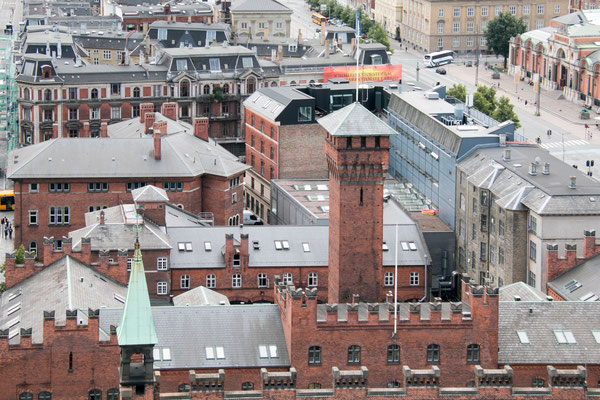 Von dort geht es nun wieder zum Rathaus, wo wir den Rathausturm besteigen. Der Eintritt ist durch unsere Copenhagen-Card frei. Der Rundum-Blick über Kopenhagen ist nach über 400 Stufen einfach toll.